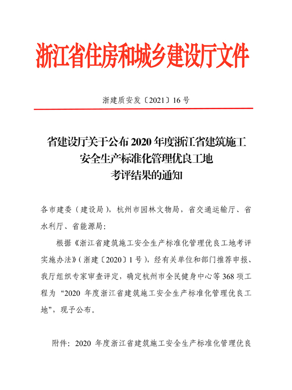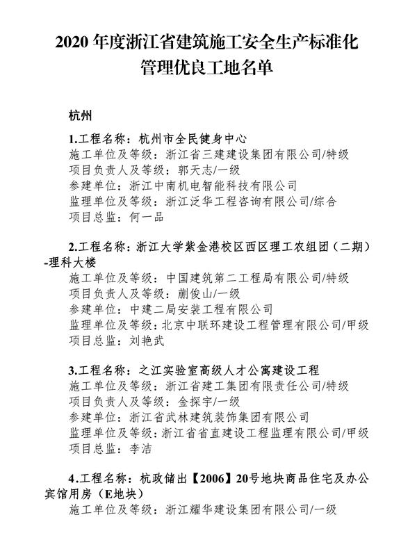 2020年浙江省優良工地
